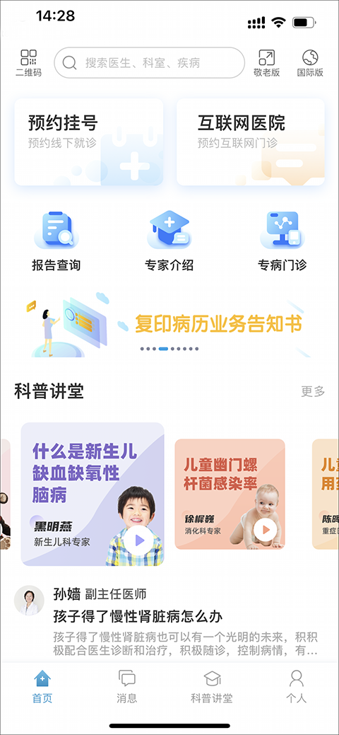 首先,在信息获取方面,即便你还未注册登录,也能轻松查阅大量实用信息。比如想了解医院的整体情况、各个科室的专长、某位专家的背景介绍,或是查看最新的出诊时间表,这些内容都对外开放,方便你提前做好功课。同时,应用内还有健康宣教栏目,帮助家长学习育儿和保健知识。