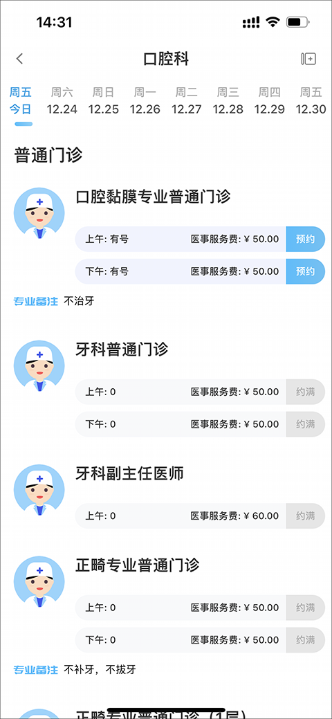 3、选定医生后,系统会展示出可预约的时间段。这里会清楚地标明上午或下午,你可以根据自己的行程安排,选择一个最方便的时间点,然后点击“预约”。