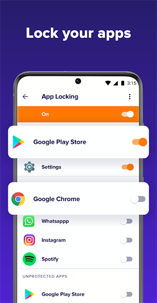 应用程序锁定:这个功能让你可以为手机上任意数量的应用程序单独加锁。无论是你的社交软件、银行应用还是私人相册,都可以用它来增加一道额外的安全屏障,有效防止他人在未经你允许的情况下打开它们,从而保护你的个人隐私。