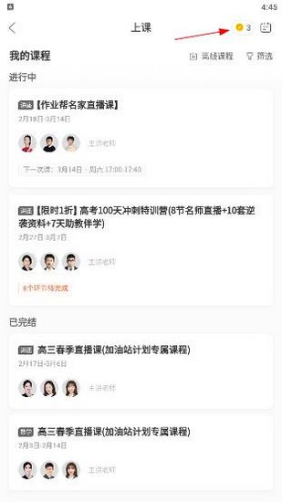 2. 进入课程页面后,你会在右上角看到一个金色的图标,这个图标代表的就是你的学分。