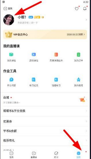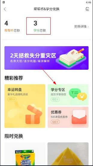4. 当你获得相应的奖励后,可以点击“帮帮币、学分兑换”入口。