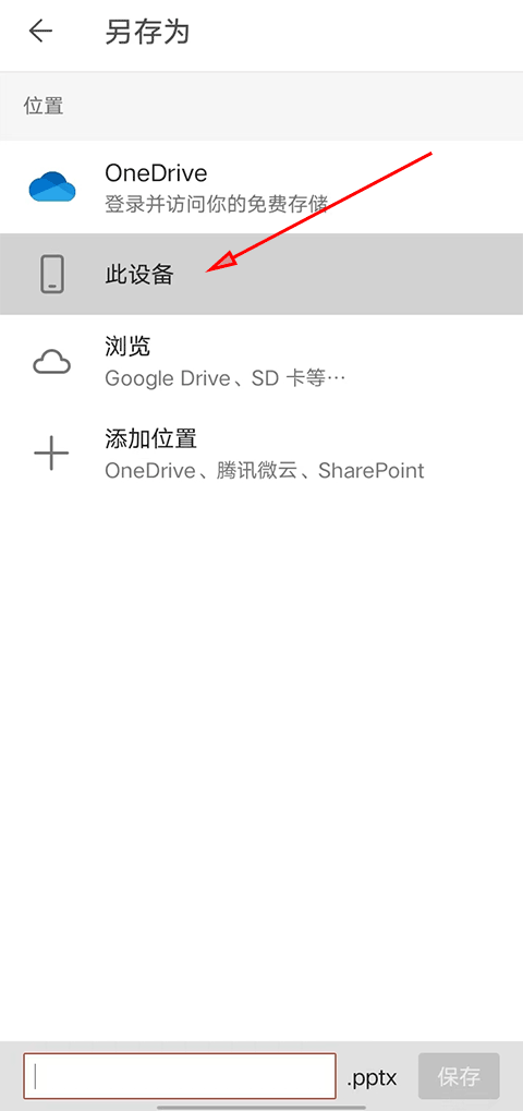 5、系统会问你文件想存到哪里,这时候咱们选择“此设备”,意思就是保存在手机本地。