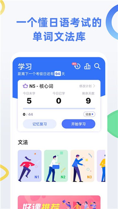 无论是新标日、新编日语还是能力考的核心词汇,各类词库都一应俱全。全新的背词模式运用科学记忆法,让背单词变得高效又轻松。