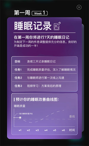 应用内设计了一套为期六周的系统化睡眠训练课程,旨在循序渐进地帮助你重塑健康的睡眠习惯。整个过程就像一次有计划的旅行,每一周都有一个明确的目标。