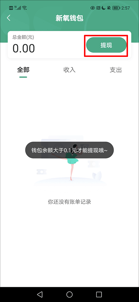 2、进入你的新氧钱包之后,留意一下页面的右上角,会有一个“提现”的按钮,点击它就可以开始你的提现操作了。