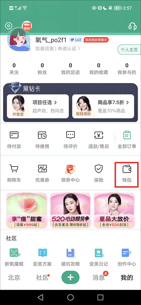 1、首先,咱们得先打开这个应用,在主界面下方找到“我的”这个入口,点进去之后,在社区版块里就能看到一个叫“新氧魔镜”的选项,戳它一下。