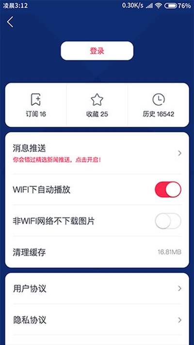 4、以上所有板块均支持搜索框的精确查找,点击头像位置处,还能下载网络图片,设置消息推送,以及清理缓存等。