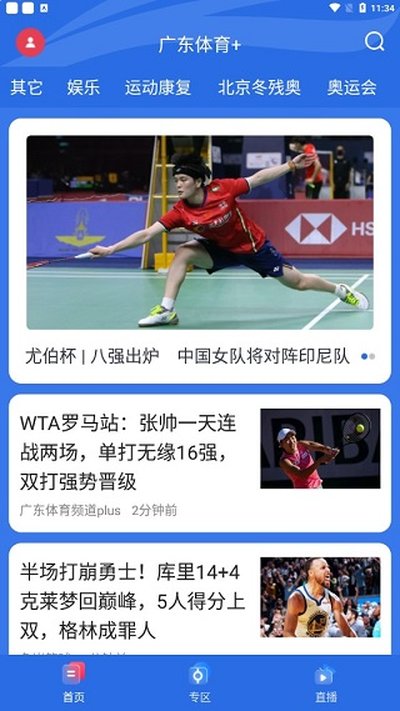 2、除了首页咨询的详细介绍,专区里提供了相关解说和运动员的专题板块,在这里你能了解到相关运动员的最新动态,其中包括最新咨询和直播内容。