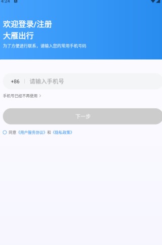 1、想要开启便捷的出行体验,第一步当然是先把大雁出行这个应用拿到手。下载安装好之后,就可以直接在手机上花几分钟时间搞定注册流程了。