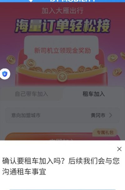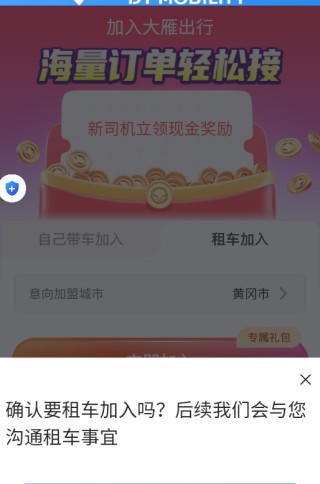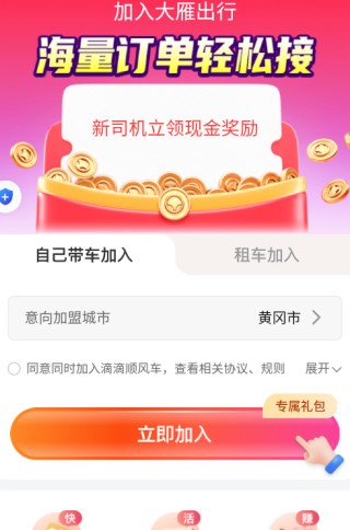 4、来到主界面后,你会发现一个有趣的选项。如果你自己有车,并且有兴趣成为一名司机来增加些收入,可以直接在这里提交申请。一旦资料审核通过,你就能摇身一变,开始接单为其他用户提供出行服务了。