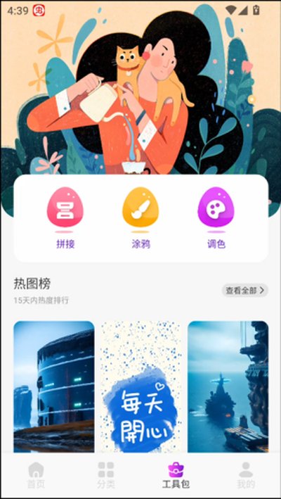 3、应用里还为你准备了一个功能强大的工具包。当你找到一张喜欢的图片但又觉得缺点什么时,就可以来这里大展身手。不管是把几张图拼在一起,还是随手涂个鸦、调整一下色彩,各种创意编辑操作都能轻松实现。