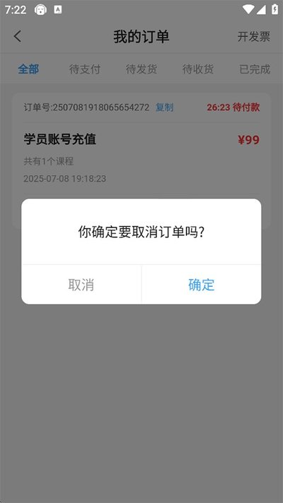 2、进入订单列表后,你会看到所有课程记录。如果有个单子还没付钱,可以直接点“取消订单”就完事了。要是已经付款了,那就找到你想退掉的那门课,旁边应该会有个“申请退款”的按钮,戳它就行。