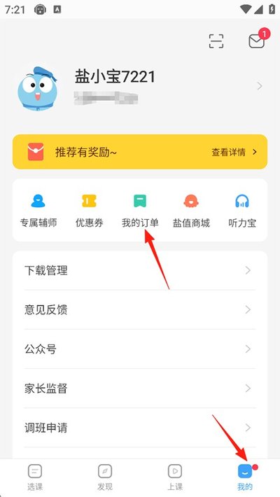 1、首先,咱们得启动盐课堂网课的应用。在主界面的右下角通常能看到一个“我的”图标,点一下进去,然后在新的页面里找到“我的订单”这个选项。