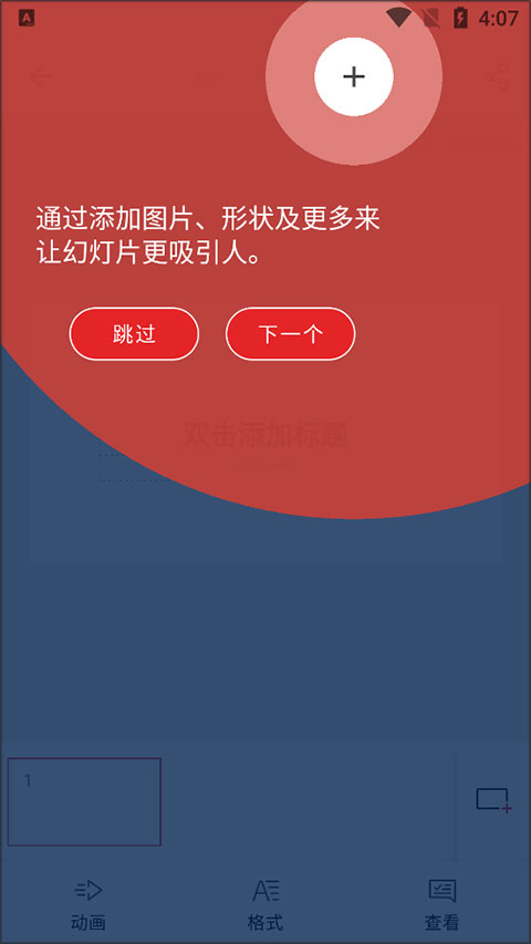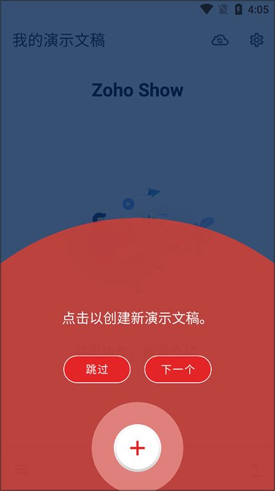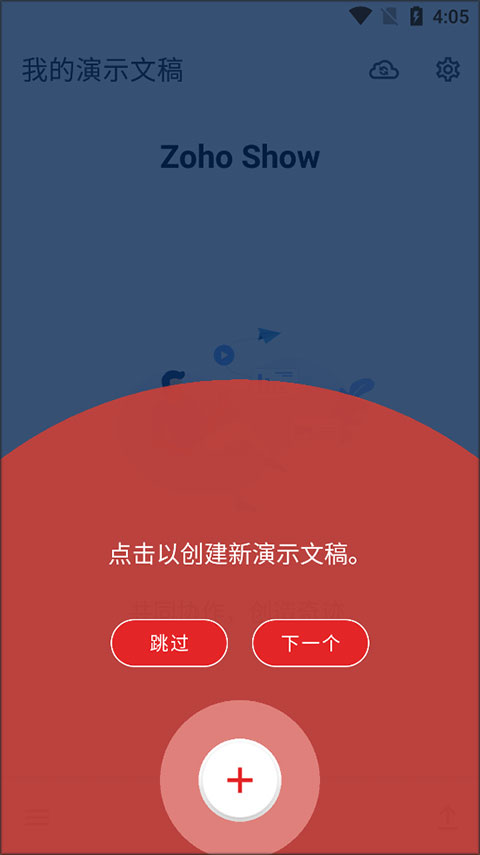 1、在手机上下载并安装好Show应用,打开后,轻点界面下方的加号按钮,即可开始创建一个新的演示文稿。