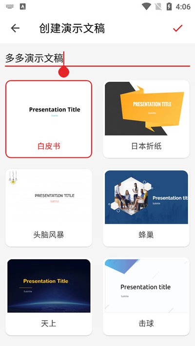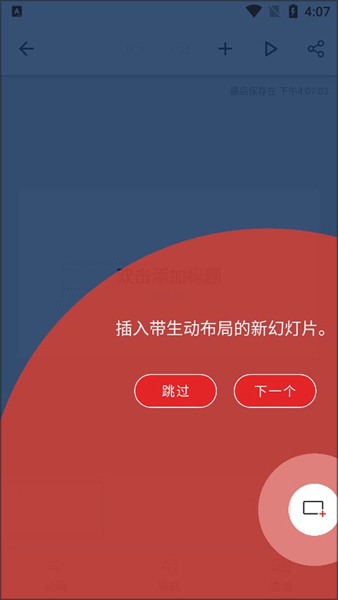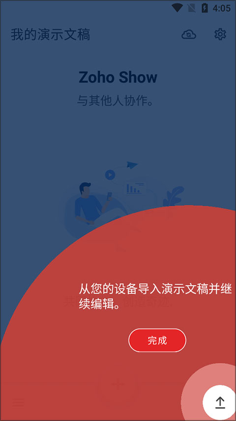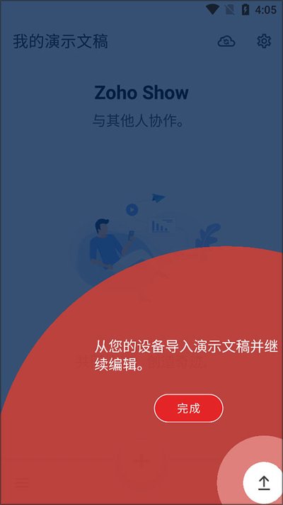 3、如果你想编辑已有的文件,可以点击右下角的图标,从你的设备中导入演示文稿,然后继续进行修改。