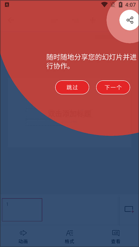6、轻点右上角的分享图标,便可以将你的幻灯片分享给他人,邀请他们一起进行协作编辑。
