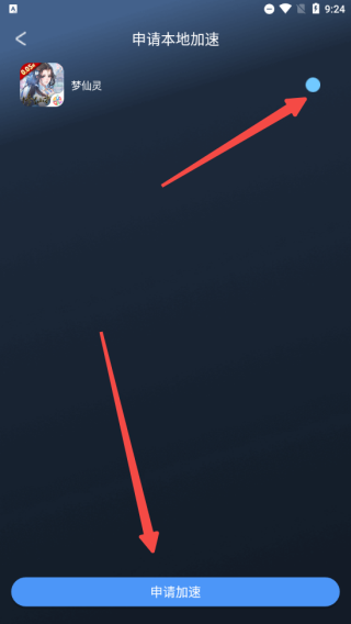 2、在加速页面中,你会看到一个选项,点击“申请加速本地游戏”来扫描你手机上安装的游戏;