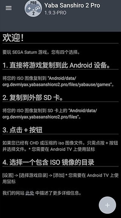 1.游戏文件存放的文件夹位置从"/sdcard/yabause/games/"变更为了"/sdcard/Android/data/org.devmiyax.yabasanshioro2.pro/files/yabause/games/"