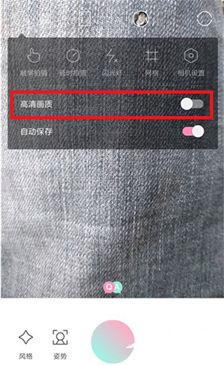 3、点击之后,屏幕顶部会弹出一个设置栏。在这里面找到“高清画质”这个选项,一般情况下它是默认关闭的。
