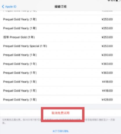 1、首先需要进入你手机Apple ID的订阅管理页面,在里面找到Prequel的相关订阅项目并进行取消。