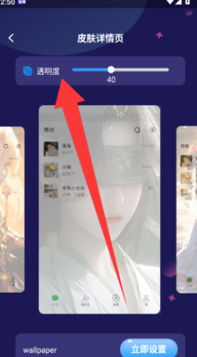 2、看到心动的壁纸先别急着设置,可以先点进去看看效果。在预览界面,你还能随手拖动滑块,调整一下壁纸的透明度,让动态效果的深浅浓淡恰到好处,跟你的手机桌面图标完美融合在一起。
