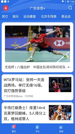 2. 除了首页的资讯流,你还可以去“专区”看看。那里为一些知名的解说员和运动员开设了专题板块,在这里你能轻松掌握他们的最新动态,包括相关的文章和直播内容。