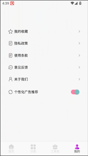 4、最后,切换到“我的”这个专属区域,这里是你的个人中心。如果在使用过程中有什么好点子或者遇到了什么问题,都可以通过意见反馈功能告诉开发团队,帮助他们把应用做得更好用。