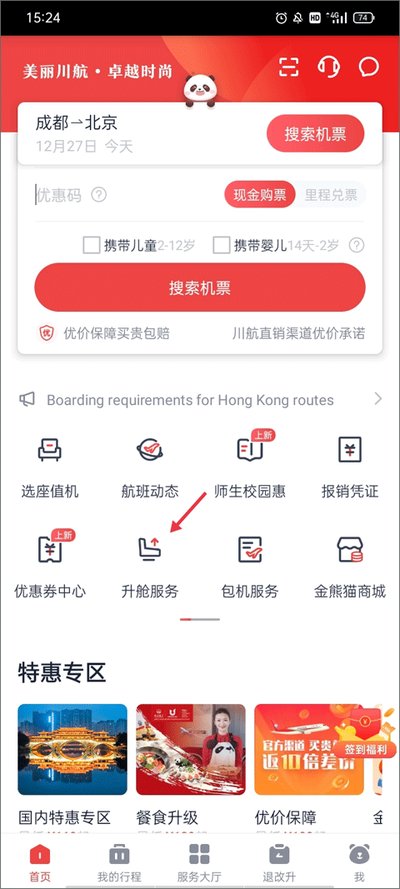 (1)这个功能的前提是你已经买好了经济舱的机票。第一步,当然是先打开川航App啦。在主界面上找到那个叫“升舱服务”的选项,点进去就行。