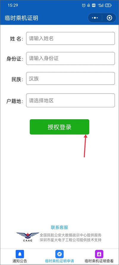 (2)点了之后,它会带你跳到一个微信小程序里。按照要求把姓名、身份证号这些基本信息填好,然后授权登录。之后就是走个流程,同意些协议,做个人脸识别,很快就能办好这个临时的乘机证明,非常人性化。