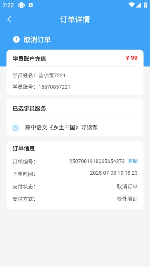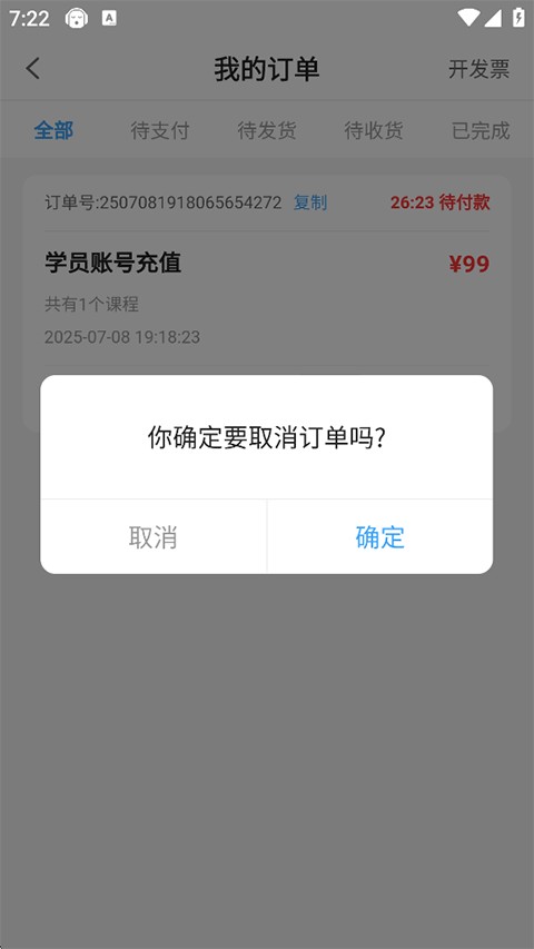 2、进入订单列表后,你会看到所有课程记录。如果有个单子还没付钱,可以直接点“取消订单”就完事了。要是已经付款了,那就找到你想退掉的那门课,旁边应该会有个“申请退款”的按钮,戳它就行。