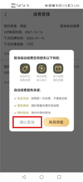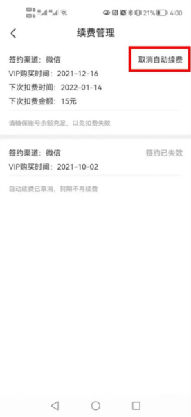 4、这时页面上会出现【取消自动续费】的选项,直接点击它。