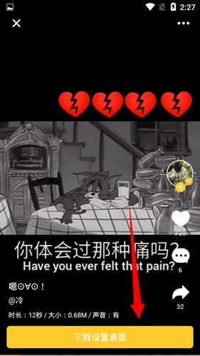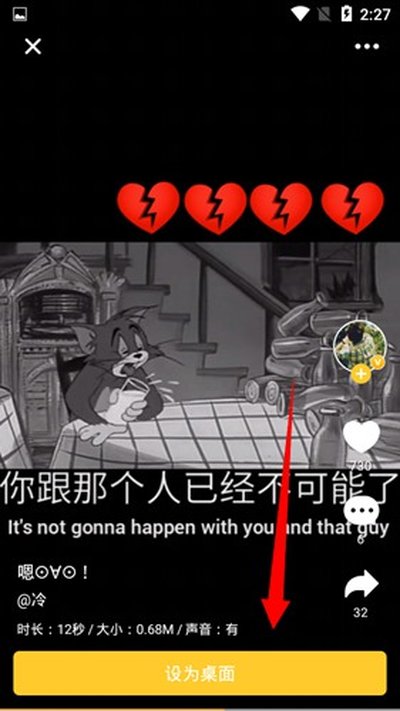 2. 进入视频预览页面后,你会在屏幕最下方看到一个下载并设置桌面的选项。