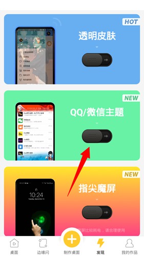 1. 在应用里切换到“发现”页面,找到并点击“QQ/微信主题”这个功能入口。