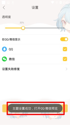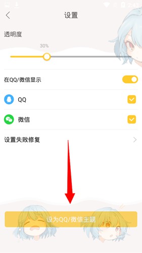 3. 调整好背景的透明度之后,点击下方的“设为QQ/微信主题”按钮。