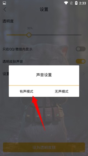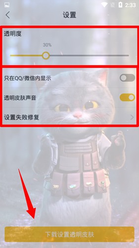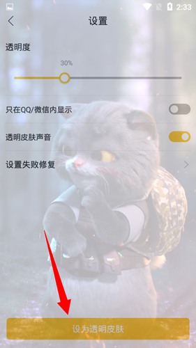 4. 下载完成后,点击“设为透明皮肤”的按钮。