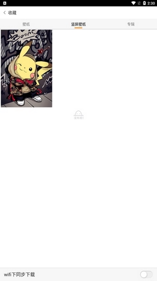 4.这里会展示你收藏过的所有壁纸。此外,你还可以在这里进行设置,让应用在下载壁纸的同时,自动将它收藏到你的账号中。
