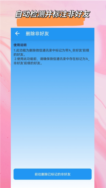 3. 检测完成后,回到主界面,点击“删除非好友”按钮,应用就会自动帮你清除掉所有已检测出的单向好友。