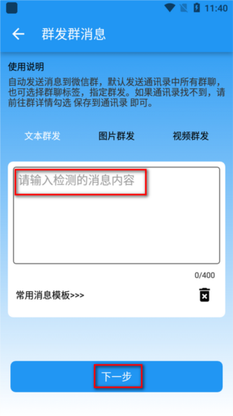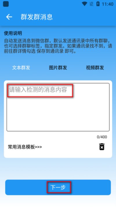 2.在发消息清理的界面里,先编辑好你想发送的消息,再点击开始进行群发检测。