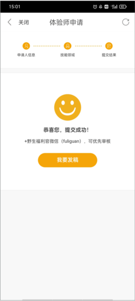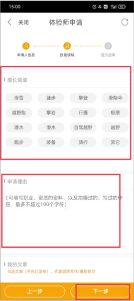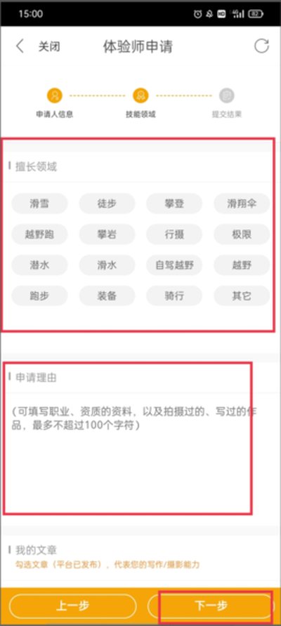 3、接下来,根据页面的引导,依次填写你的申请信息、选择你擅长的技能领域,并陈述你的申请理由。全部完成后提交,然后耐心等待审核结果就可以了。