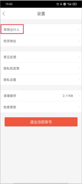 2、进入到设置页面之后,在列表中找到并选择“常用出行人”这一项。