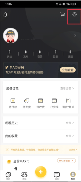 1、操作的起点同样是在【我的】界面,这次需要点击右上角那个齿轮形状的设置图标。