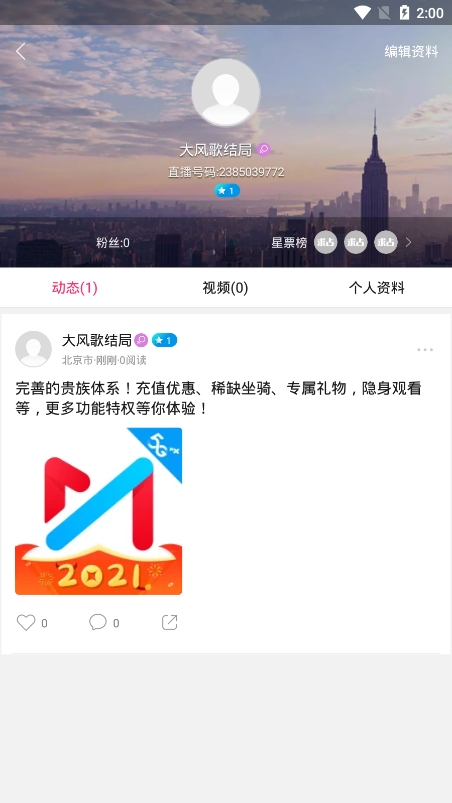5、直播结束后,想要关闭的话,只需要在直播点击右下角那个“X”形状的按钮就行了。关闭之后,系统还会告诉你这次直播收获了多少星票以及有多少人观看过。