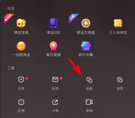 2、点开后你会看到很多有趣的玩法和实用工具,其中第三个就是我们需要的“连麦”功能了。