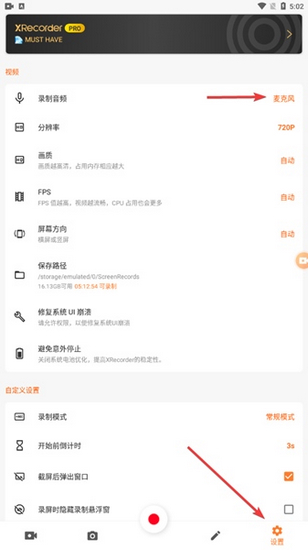 录制音频:除了屏幕画面,它还能同时录制设备的背景音乐和来自麦克风的声音。这个功能对于制作游戏解说、教学视频或者录制翻唱歌曲来说非常实用。