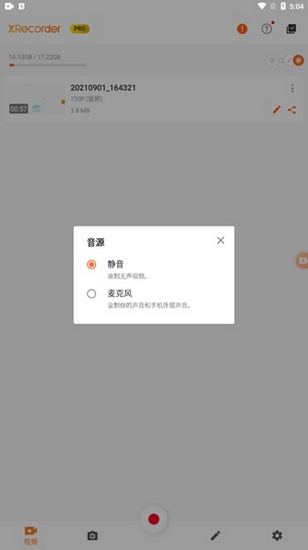 2.然后,系统会提供“静音”和“麦克风”两个选项。因为我们不想录到外界的声音,所以这里要选择“静音”。