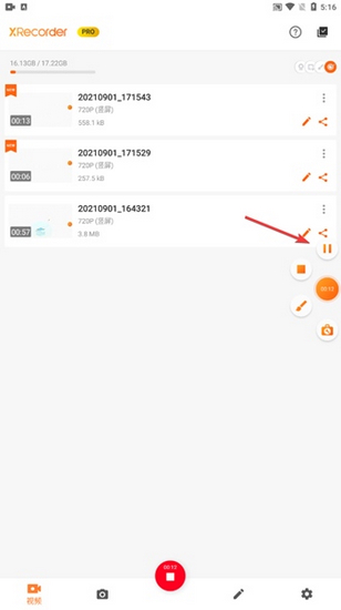 4.当我们处理完事情,再次点击这个按钮,应用就会从暂停的地方继续开始录制视频。