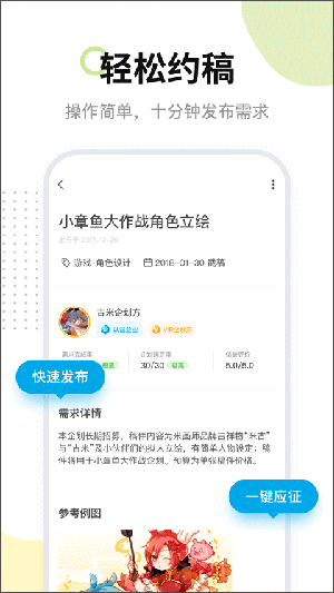 2、画师们期待已久的应征功能终于上线,现在你可以随时随地把握工作机会。下载米画师APP,申请项目总是能比别人快一步!