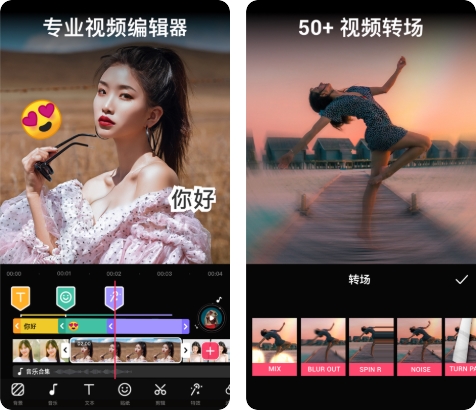 丝滑转场效果:内置多种幻灯片和转场特效,制作卡点视频或Vlog时,能让画面衔接得更自然流畅。
