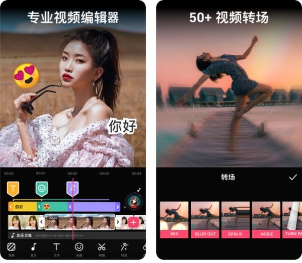 随心搭配音乐:内置海量精选音乐库,同时也支持导入手机里的个人珍藏曲目,让你的视频更有感染力。