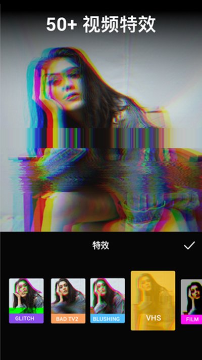 3. 你可以使用各种炫酷的特效来编辑影片,比如时下流行的毛刺效果、马赛克等,让视频更潮。